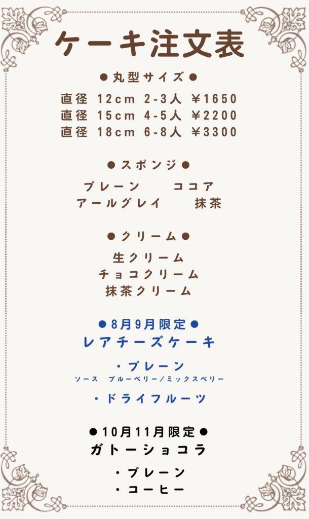 ご希望のサイズ・スポンジの味・クリームの味をお知らせください。